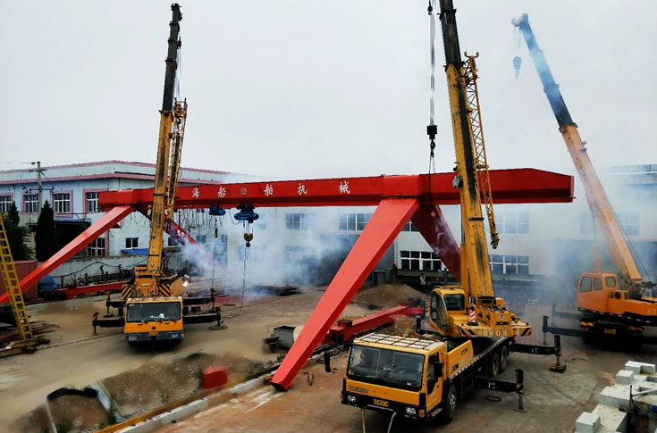 2018年6月25日,中海公司院內新裝一臺20噸門機,圖為門機橫梁正在吊裝。