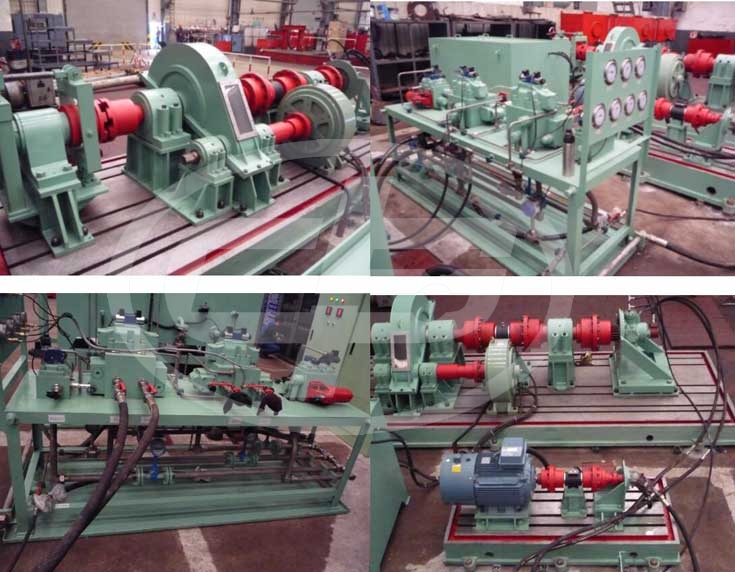 液壓馬達試驗平臺由磁粉制動器、扭矩傳感器、牙嵌離合器、底座等部分構成。通過簡單的操作可以實現(xiàn)馬達動態(tài)、靜態(tài)扭矩的測量,操作臺上的各種智能儀表可以實時顯示被測馬達的壓力、流量、泄漏量、扭矩等參數(shù)。