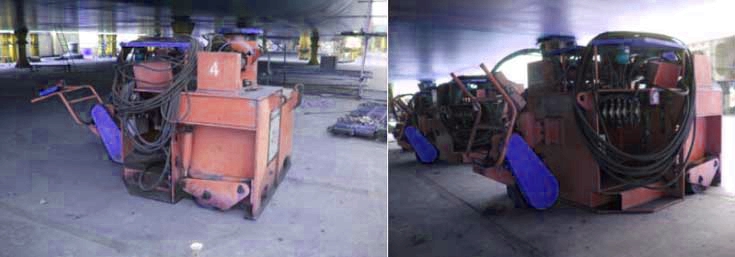 ③設備自帶液壓馬達行走功能,行走輪的液壓升降,前后驅動均由設置在行走手柄上的按鍵控制,單人可輕松實現設備的行走和就位,同時設置有吊點和鏟齒孔方便門吊和叉車運輸;